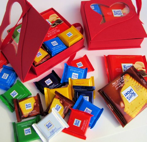 Here are some of the great features of RITTER Sport Assorted Milk Chocolate Bars in Red Valentine Heart Box