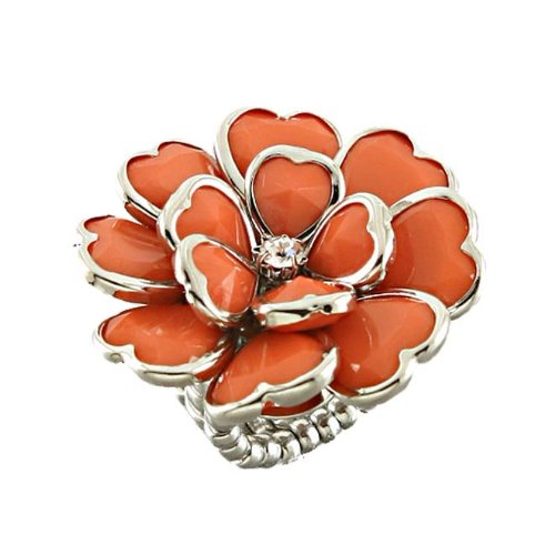 Here are some of the great features of Matte Silver Plated Fashion Stretch Ring with Orange Flower and Clear Crystal in Center For Women - One Size Fits most