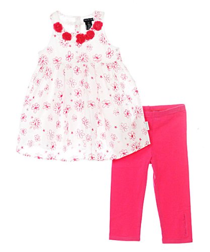 Calvin Klein "Bloom, For superior style and quality, choose this 2-piece from Calvin Klein. The dress features allover flower stitching on the poplin exterior, buttons in back, and a circle neckline with tulle rosettes. The matching leggings have an elastic waistband. A marvelous addition to her spring and summer wardrobe. Dress 100% Cotton Leggings 95% Cotton, 5% Spandex Machine Wash Cold Made in China
